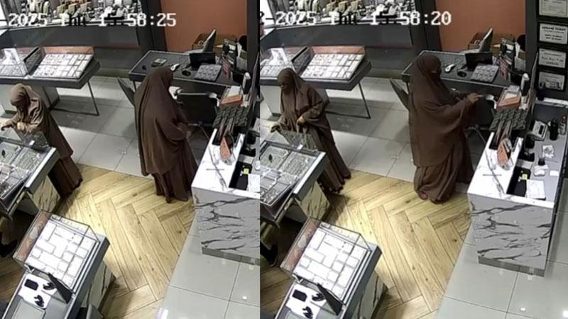 İstanbul'da çarşaf giyerek müşteri gibi girdikleri kuyumculardan ziynet eşyalarını bakıyormuş gibi yaparak yaklaşık 3 milyon lira değerinde altın çalan iki kadın yakalandı. Şüphelilerden S.K.(16)'nın 51 suç kaydı olduğu ortaya çıkarken, hırsızlık anları güvenlik kamerasına yansıdı.