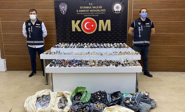 İstanbul Emniyet Müdürlüğü Kaçakçılık Suçlarıyla Mücadele Şube Müdürlüğü ekipleri, yurtdışından kaçak olarak getirilen eşyaları satanlara yönelik çalışma başlattı. Ekipler, 2 ve 4 ağustos tarihleri Fatih, Sarıyer, Pendik ve Esenler'de bulunan 16 adrese operasyon düzenledi. Adreslerde yapılan aramalarda, piyasa değeri yaklaşık 6 buçuk milyon lira olan, 14 bin 272 dokunmatik telefon ekranı, 14 bin 110 şarj aleti başlığı, 730 şarj aleti kablosu, 3 bin 745 cep telefonu bataryası, 285 oyun konsolu, 279 cep telefonu, 29 fotoğraf kamera lensi, 5 fotoğraf makinesi, bin 755 kutu tıbbi ilaç, bin 272 kol saati, 65 lüks araçlara ait sunroof, 470 tablet camı, 184 telefon arka kapağı, 348 telefon temizleme spreyi, bin 80 telefon tamirinde kullanılan yapıştırıcı, 5 bluetooth kulaklık ele geçirildi. 11 şüpheli gözaltına alındı.