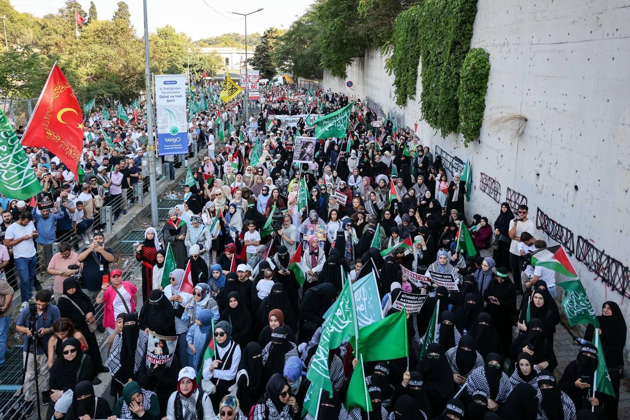 İsrail’in Gazze’ye yönelik saldırılarını protesto etmek amacıyla İstanbul’da yürüyüş eylemi düzenlendi. Eylem, İstinye’deki Mahmut Çavuş Camii önünden ikindi namazının ardından başladı. Yürüyüşe katılan on binler, ABD’nin İstanbul Konsolosluğu’na yürüdü. Katılımcılar yürüyüş boyunca ellerinde Gazze’ye destek mesajları içeren dövizler taşıdı, İsrail’e ve ABD’ye yönelik sloganlar attı.