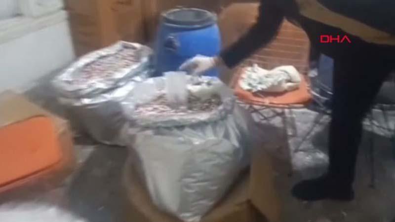 İmalathanede yapılan aramalarda; bin 230 kutu kaçak kanser ilacı, 150 bin sentetik uyuşturucu hap, 25 kilogram pregabalin (655 bin uyuşturucu hap üretilebilecek ham madde), 2 hassas terazi, 5 bin boş plastik kutu, uyuşturucu imalathanesi ve muhtelif malzemeler ele geçirildi.