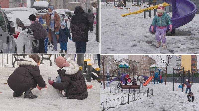 İstanbul'da aralıklarla devam eden kar yağışı dün gece itibariyle etkisini arttırdı. Bazı ilçelerde kar kalınlığı kısa sürede artarken, parklar, bahçeler ve sokaklar beyaz örtüyle kaplandı. Yarıyıl tatilinde olan çocuklar kar yağışını fırsat bilerek sokaklara çıktı.