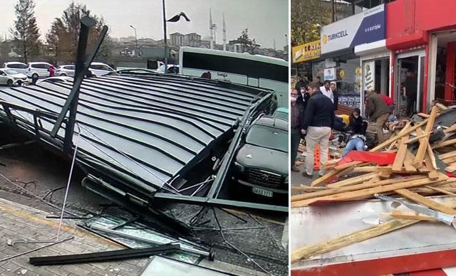 BAĞCILAR'DA KAFE ÇATISI 6 ARACIN ÜZERİNE UÇTU; 2 KİŞİ YARALANDI