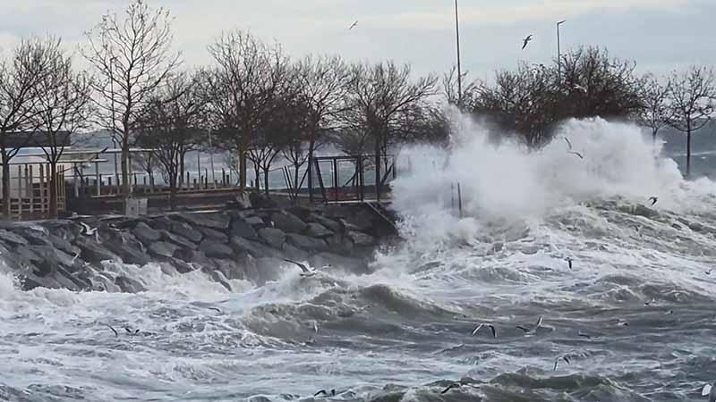 İstanbul’da lodosun etkisiyle dalgalar mendirekleri aştı; 2 tekne battı