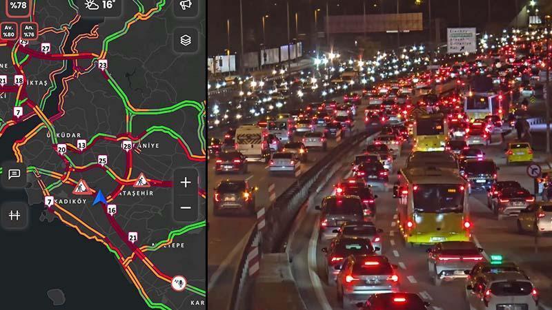 İstanbul'da akşam saatlerinde trafik yoğunluğu yüzde 78'e ulaştı. Bir çok ana arterde trafik durma noktasına geldi.