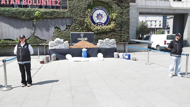 İstanbul'da düzenlenen operasyonlarda 417,5 kilogram uyuşturucu ele geçirildi, 10 şüpheli tutuklandı. Ele geçirilen uyuşturucu maddeler İstanbul Emniyet Müdürlüğü Vatan yerleşkesinde sergilendi.