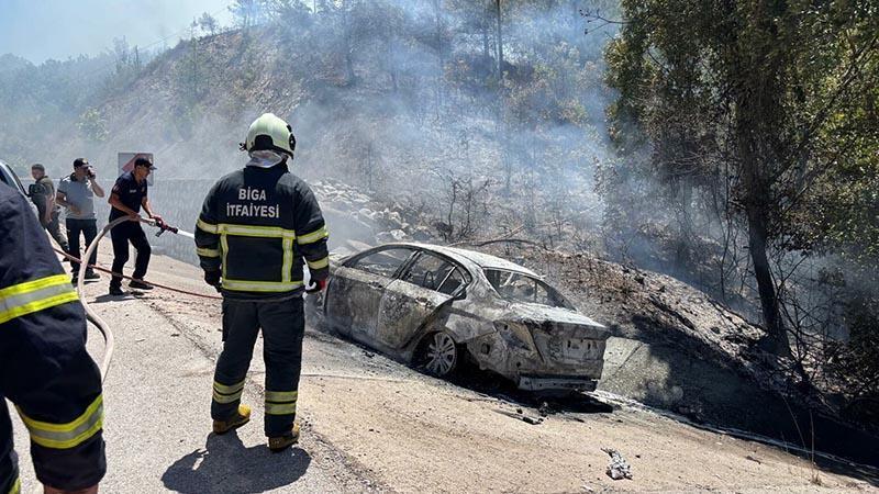 Çanakkale'nin Lapseki ilçesinde istinat duvarına çarpıp, alev alan otomobildeki baba Reşat El (69) hayatını kaybetti, sürücü Recep El (40) ile annesi Fatma El yaralandı.