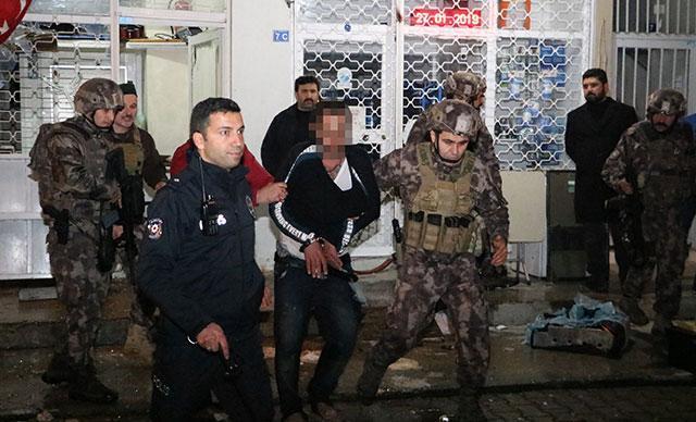 Antalya'da, işyerinin deposunun camını kırarak giren şüpheli, kendisine müdahale etmek isteyen polislere içerdeki eşyaları atarak direndi. Bunun üzerine olay yerine çağrılan Özel Harekat Şube Müdürlüğü ekipleri, düzenlediği operasyonla şüpheliyi gözaltına aldı.