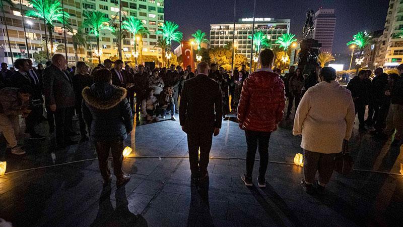 Gazi Mustafa Kemal Atatürk'ün ölümünün 84. yıldönümü nedeniyle İzmir Büyükşehir Belediyesi Ata’ya Saygı Nöbeti başlattı. Ata'ya Saygı Nöbeti, 9 Kasım'da saatler 21.05’i gösterdiğinde saygı duruşuyla başladı. Cumhuriyet Meydanı'nda, etkinliğe katılanlar, Atartük'ün ölüm yılı olan 1938'deki '8' rakamını sonsuzluk işaretine çevirerek meşaleler oluşturdu. 10 Kasım saat 09.05'e kadar sürecek olan nöbete katılan Gül Avanoğlu, “Çok aradığımız birisi o. Hele ki şu dönemde onun bakışına, ileri görüşüne, ilke ve inkılaplarına çok ihtiyacımız var. O günlerden bugünleri inşa etti. Özellikle çocukların, gençlerin daha fazla sahip çıkması gerekiyor. O yüzden burada 21 yaşında bir genç olarak bulunmayı çok istedim. Kendisini saygı ve özlemle anıyoruz. Ben çok özledim. Bu etkinliği de çok anlamlı buluyorum. Atamızın anısına yaraşır bir etkinlik oldu bizler için.” dedi. Gece boyunca nöbet tutanlar için Türk Kızılay'ı da Cumhuriyet Meydanı'nda görev aldı. Türk Kızılay'ı ve İzmir Büyükşehir Belediyesi'nin ikram araçları, nöbet tutan vatandaşlara ve belediye personellerine destek verdi. Öte yandan, etkinliğe katılan Ertuğrul Turgay, "Burada Ata'ya saygı nöbeti gerçekleştiriyoruz. Gazi Mustafa Kemal Atatürk'ün ölümünün 84. yılında kendisini anmak üzere İzmirliler sabaha kadar uyumayacak. Akşam 21.05'den itibaren başlayan bu saygı nöbetimiz, sabah 09.05'e kadar devam edecek ve Atamızı saygıyla anmış olacak. diye konuştu.