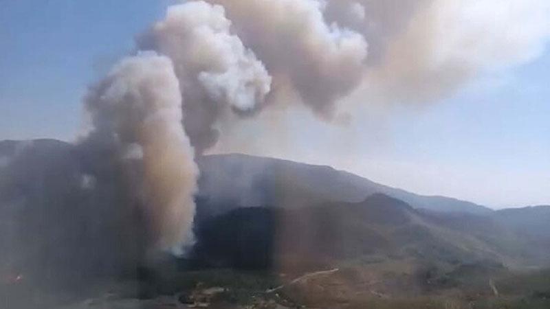 Ayrıca 46 arazöz, 13 su ikmal aracı, 7 dozer ve 7 ilk müdahale yer ekibiyle birlikte söndürme çalışmaları sürüyor.