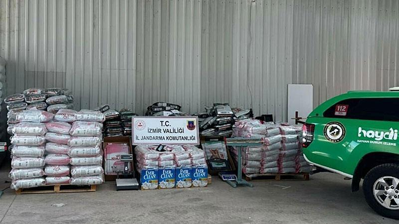 İzmir’in Menderes ilçesinde jandarma ekiplerinin düzenlediği baskında 14 ton sahte kedi-köpek maması ele geçirildi, 1 kişi gözaltına alındı.