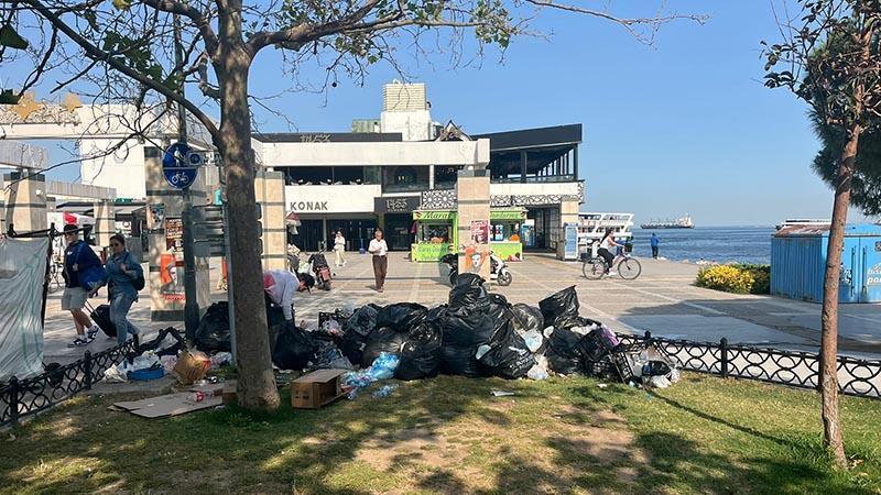 İzmir'de grevin 6'ncı gününde Konak'ta çöpler birikti