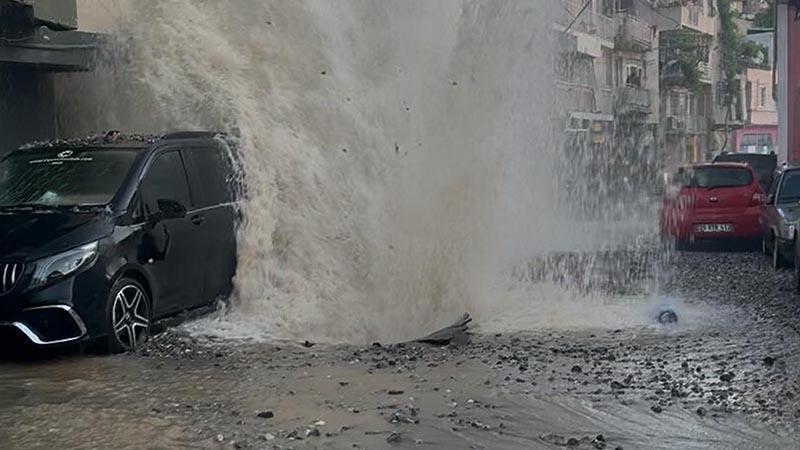 İzmir'in Konak ilçesinde içme suyu isale hattında patlama meydana geldi. Patlamanın etkisiyle park halindeki 4 otomobil hasar gördü.