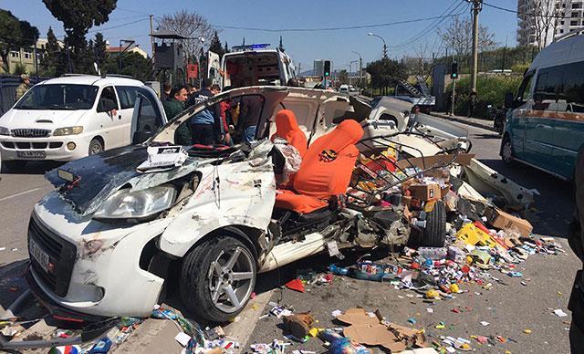 Kaza, saat 14.30 sıralarında, Kemalpaşa Caddesi Moda, Tekstil ve Konfeksiyoncular Sitesi'nin 1'inci girişinde meydana geldi. Bülent A. yönetimindeki 35 AGH 864 plakalı hafif ticari araç, iddiaya göre, önündeki H.Y.'nin kullandığı 06 BEP 678 palakalı kasalı kamyoneti sollamaya çalıştığı sırada, karşı yönden gelen İsmail T. yönetimindeki 35 DB 2802 plakalı belediye otobüsüne çarptı. Çarpışmanın şiddetiyle hafif ticari araçtan kopan parçalar, kamyonete zarar verdi. Kazada, sürücüler yaralandı. Çevredekilerin ihbarı üzerine kaza yerine sağlık, polis ve 110 AKS ekipleri sevk edildi. Gelen 110 AKS ekipleri, araçta sıkışan Bülent A.'yı çıkardı. İki yaralı yapılan ilk müdahalelerinin ardından Sağlık Bilimleri Üniversitesi (SBÜ) Tepecik Eğitim ve Araştırma Hastanesi'ne kaldırıldı. Burada tedaviye alınan yaralıların durumunun ağır olduğu bildirildi.