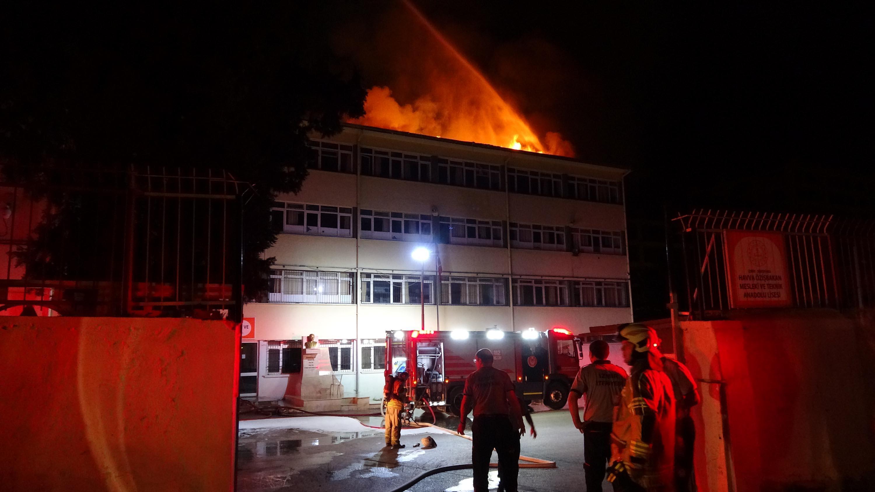 Yangın saat 01.00 sıralarında İmbatlı Mahallesi 6087 Sokak'ta bulunan Havva Özişbakan Mesleki ve Teknik Anadolu Lisesi'nin çatısında çıktı.