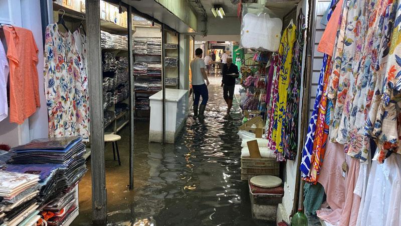 İzmir'de etkili olan sağanak nedeniyle Tarihi Kemeraltı Çarşısı'ndaki handa iş yerlerini su bastı.