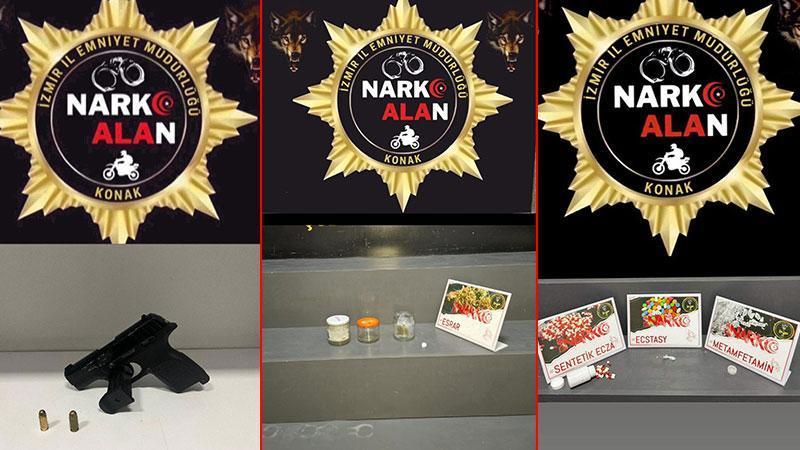 İzmir İl Emniyet Müdürlüğü’ne bağlı Narkotik Suçlarla Mücadele Şube Müdürlüğü ve Konak İlçe Emniyet Müdürlüğü ekiplerince oluşturulan Narkoalan timleri, 1-14 Ekim 2025 tarihleri arasında 11 farklı işyeri ve ev adreslerine operasyon düzenledi. Uyuşturucu ve silah ticaretine yönelik yapılan çalışmada, 103 gram bonzai, 14 gram kokain, 14 gram metamfetamin, 849 adet sentetik hap, 17,91 gram esrar, 3 hassas terazi, 15 bin 50 TL nakit para, 3 tabanca, 2 pompalı tüfek, 44 fişek ile çok sayıda silah parçası ele geçirildi.