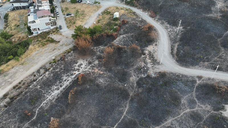İzmir’de yerleşim yerlerinin çevresinde yanan alanlar dronla görüntülendi