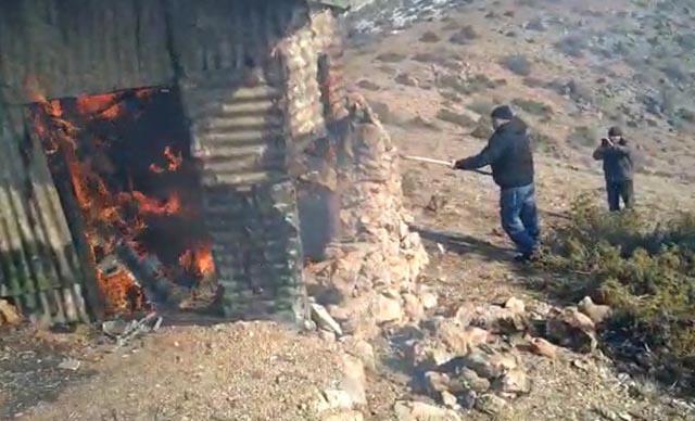 Kaçak av için yapılan kulübe yakılarak imha edildi
