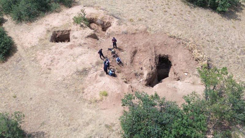 Kaçak kazı yapan 4 kişi fotokapana yakalandı; jandarmanın operasyonu dron kamerasında