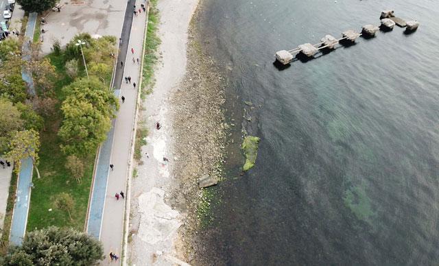 Kadıköy'de sahillerde deniz suyunun çekilerek kayalıkların ortaya çıktığını gören vatandaşlar tedirgin oldu. Yaşanan durumun depremle ilgili olmadığını belirten Prof. Dr. Şükrü Ersoy, " Yılın bu zamanlarında yağışlara bağlı olarak meteorolojik şartlardan dolayı ve karadan denize doğru olan rüzgarlarda sular çekilir. Su çekilmesini depreme bağlayamayız " dedi. Deniz seviyesinde yaşanan değişiklik havadan da fotoğraflandı.