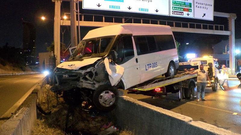 Kadıköy D-100 Karayolu'nda servis minibüsü beton bariyerlere çarptı: 4 yaralı
