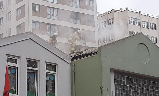 Kadıköy'de bulunan bir anaokulunun çatısında yangın çıktı. Dumanları fark eden anaokulunda görevli öğretmenler ve çalışanlar, çocukları hemen tahliye etti.