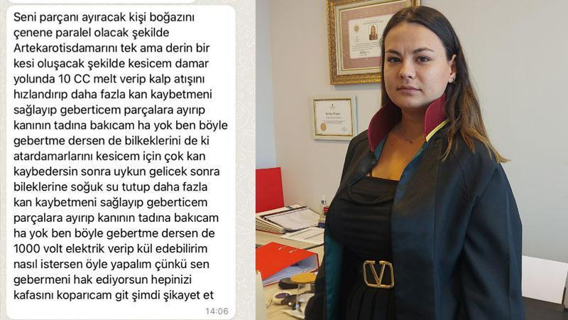 Kadın avukatlara gönderilen mesajda, 'Kimsiniz?' sorusuna 'Seni parçalara ayıracak kişiyim' cevabı verildiği, 'Kanının tadına bakacağım' gibi ifadelerin yer aldığı görüldü.