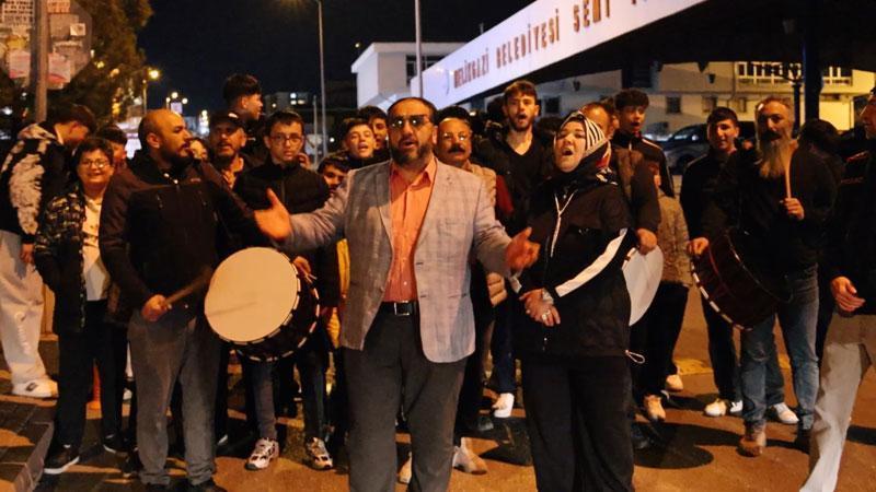 Melikgazi ilçesi Demokrasi Mahallesi Muhtarı Hatun Kekeç, kentte idrak edilen ‘Kadir Gecesi’ sonrası mahallenin gençleri ve ramazan davulcuları ile bir araya geldi. Yaklaşık 80 kişinin oluşturduğu kalabalık, mahalleyi dolaşarak son günlerde dillerden düşmeyen ‘Kabe’de Hacılar Hu Der Allah’ ilahisini sokaklarda davul ve zurna eşliğinde söyledi. Kalabalığın söylediği ilahiye, evlerinin camlarından çıkan vatandaşlar da eşlik etti. O anları kaydettiren Hatun Kekeç, sanal medya hesabında paylaştı.