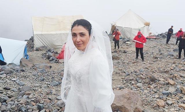 Dağcı Sevgül Eraslan (33), kadın ve çocuklara yönelik şiddete dikkat çekmek için sembolik olarak Ağrı Dağı ile evlendi. Gelinlik ile 4 bin 200 metreye çıkan Eraslan, "Ağrı Dağı ile sembolik olarak evlendim. Çocuklara ve kadınlara yönelik işlenen suçları ve gösterilen şiddeti kınamak istedim" dedi.