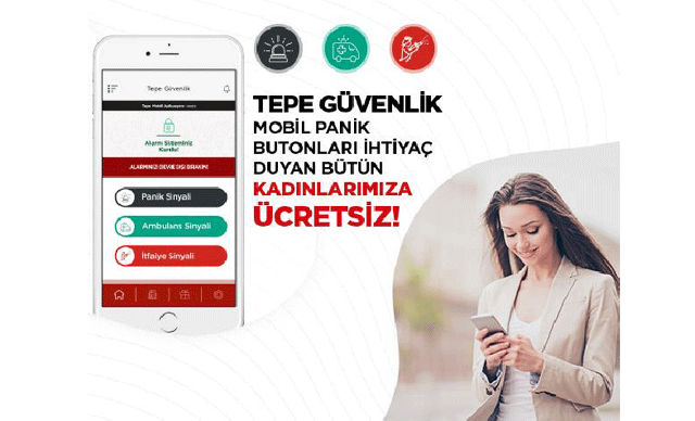 Tepe Güvenlik, şiddete maruz kalan ya da herhangi bir olumsuz durum karşısında kadınlara destek sunmak amacıyla önemli bir uygulamayı hayata geçirdi. Herhangi bir olumsuz durum karşısında destek talebinde bulunmak isteyen tüm kadınlar, 'Tepe Güvenlik Mobil' uygulamasındaki panik, ambulans ve itfaiye butonları aracılığıyla, söz konusu acil yardım hizmetlerinden zaman sınırı olmaksızın ücretsiz olarak faydalanabilecek. Uygulama sayesinde kadınlar, güvenliklerini tehdit eden bir olayla karşılaştıklarında ya da bir sağlık sorunu yaşadıklarında herhangi birinden yardım almak adına evlerinden çıkmadan ambulans ve itfaiye yardımından veya kolluk güçlerinin desteğinden faydalanabilecekler.