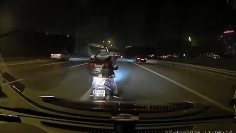 Kağıthane TEM Otoyolu'nda aracın önünde durdu; çocukla motosikletten inip hayatını tehlikeye attı