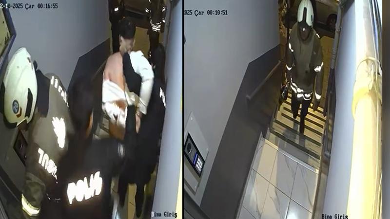 Kağıthane’de iddiaya göre annesi Çiğdem B.’yi (42) darbeden Bedirhan T. (20), kendisini 'Kendimi keseceğim' diyerek odaya kilitledi. Annenin ihbarda bulunması üzerine eve gelen polis ekipleri, itfaiye ekiplerinin kapıyı kırmasının ardından Bedirhan T.’yi yakaladı. Gözaltına alınan Bedirhan T., ambulansla hastaneye kaldırıldı. Olay güvenlik kamerasına yansıdı.