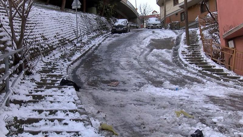 İstanbul'un bazı ilçelerinde etkili olan kar yağışının ardından gece saatlerinde don ve buzlanma yaşandı. Kağıthane'de sabah işlerine gitmek için dışarı çıkan vatandaşlar dik merdivenleri geçmek için büyük çaba harcadı.