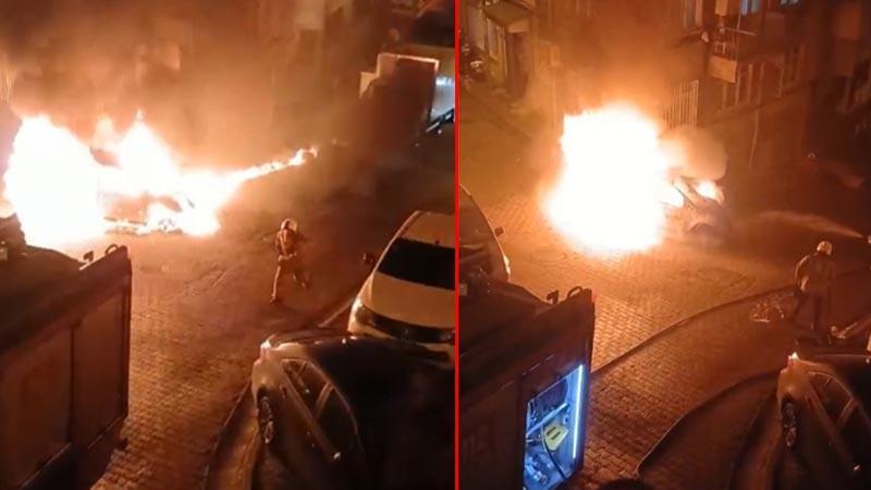 Kağıthane’de Furkan İ. (25) sabah erken saatlerde teyzesinden ödünç aldığı araçla gezdikten sonra sokağa geldi; ardından da aracı park ettikten sonra evine gitti. Park halindeki araç yaklaşık 1 saat sonra alev alev yanmaya başladı. Dışarıdan gelen sesleri duyup aracın alev topuna döndüğünü gören Furkan İ. itfaiye ekiplerine ihbarda bulundu. Mahallede paniğe neden olan yangın, itfaiyenin müdahalesiyle söndürüldü. İtfaiye raporunda, aracın tamamen yanması nedeniyle, yangının çıkış nedeninin tespit edilemediği, elektrik kaynaklı olabileceğinden şüphelenildiği belirtildi. Diğer yandan otomobilin alev alev yandığı ve itfaiye ekiplerinin yangına müdahale etttiği anlar cep telefonu kamerasına yansıdı.