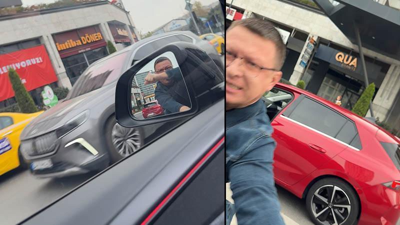 Olay, dün saat 09.45 sıralarında Hamidiye Mahallesi'nde meydana geldi. Edinilen bilgiye göre, 34 NMG 536 plakalı araçla seyir halinde olan Muhammed Yağız Ö. ile 34 GZG 696 plakalı otomobilin sürücüsü arasında yol verme nedeniyle tartışma çıktı. Birkaç kez ani fren yaparak trafiği tehlikeye düşüren otomobilin sürücüsü, kırmızı ışığa geldiğinde aracından indi. Muhammed Yağız Ö.'ye hakaret ve küfür eden, aracın da kapısını zorlayarak açmaya çalışan sürücü dengesini kaybederek yere düştü. Olayın ardından Muhammed Yağız Ö. oradan uzaklaştı. Yaşananlar hem cep telefonu hem de araç kamerasına yansıdı.