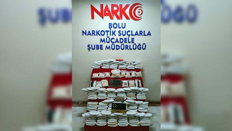 Bolu'da polisin durdurduğu kamyonette yapılan aramada, pul biber ve isot paketlerine gizlenmiş 35 kilo 400 gram esrar ile 38 bin 325 adet uyuşturucu hap ele geçirildi.