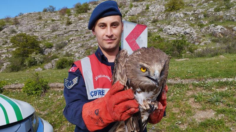 Zile ilçesinde yaşayanlar, yerde uçamayan kartal buldu. İhbar üzerine bölgeye İl Jandarma Komutanlığı Çevre, Doğa ve Hayvanları Koruma timi sevk edildi. Ekipler, incelemelerinde, kartalın sağ kanadında kırık tespit etti. Kartal, tedavisi için Doğa Koruma ve Milli Parklar İl Müdürlüğü'ne teslim edildi.