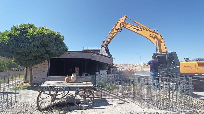 Türkiye’nin önemli turizm merkezlerinden Kapadokya'da, kaçak olduğu belirlenen bir otel ile restoranın yıkımı gerçekleştirildi.