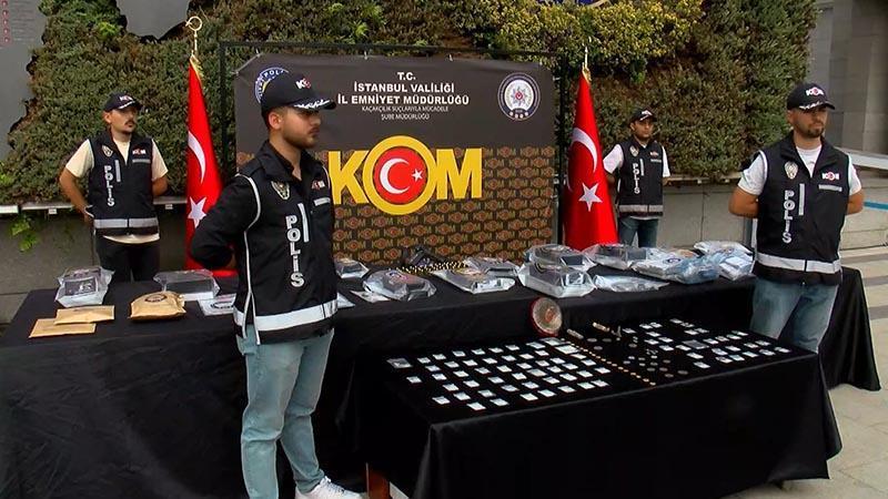 İstanbul'da kaçak pırlanta soruşturması kapsamında, Kapalıçarşı bölgesinde 23 iş yerine düzenlenen operasyonlarda 43 şüpheli gözaltına alınırken piyasa değeri yaklaşık 1 milyar 695 milyon 750 bin lira olan pırlanta, değerli taş, ziynet eşyası ve tarihi eser ele geçirildi. Şüphelilerin emniyetteki işlemleri sürerken ele geçirilenler İstanbul Emniyet Müdürlüğü'nde sergilendi.