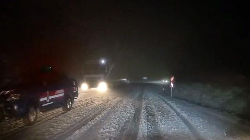 Kar yağışının etkili olduğu kara yolunda güvenlik amacıyla ağır tonajlı araçların geçişine izin verilmezken, ekipleri kar küreme ve tuzlama çalışması başlattı. Yetkililer, güzergahı kullanacak sürücülere kış lastiği, zincir ve gerekli ekipman olmadan yola çıkmamaları çağrısında bulundu.