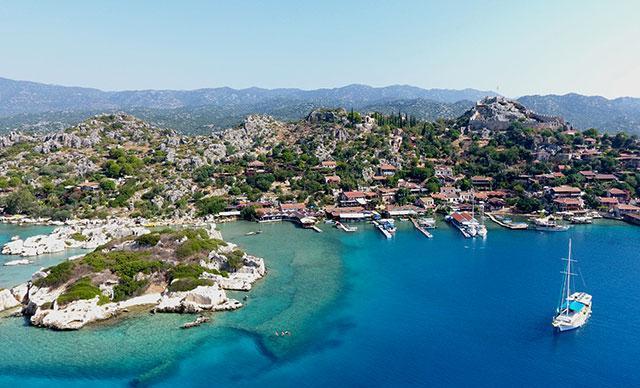 Antalya'nın Demre ilçesinde, birinci derece tarihi ve doğal sit alanı olan Kaleköy, güzelliğiyle hayran bırakıyor. Karayolu olmayan Kaleköy'e, yalnızca denizden ulaşılabiliyor.