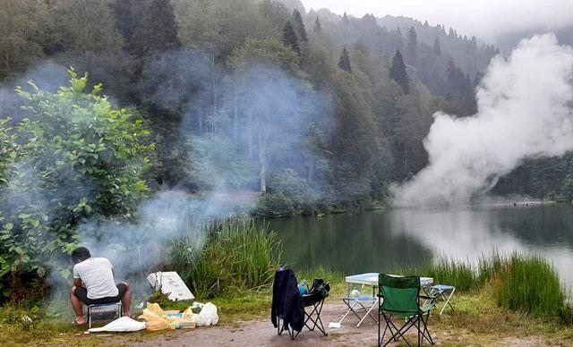 Karagöl Milli Parkı'nda piknikçiler mangal, gelin ve damat meÅŸale yaktı