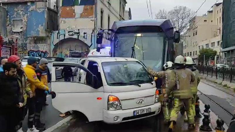 Beyoğlu, Karaköy'de Kabataş-Bağcılar tramvay hattına giren kamyonete tramvay çarptı. Kamyonet içerisinde sıkışan sürücü çıkarılarak hastaneye kaldırıldı. Bir süre trafiğe kapanan yol kamyonetin çekilmesiyle normale döndü.