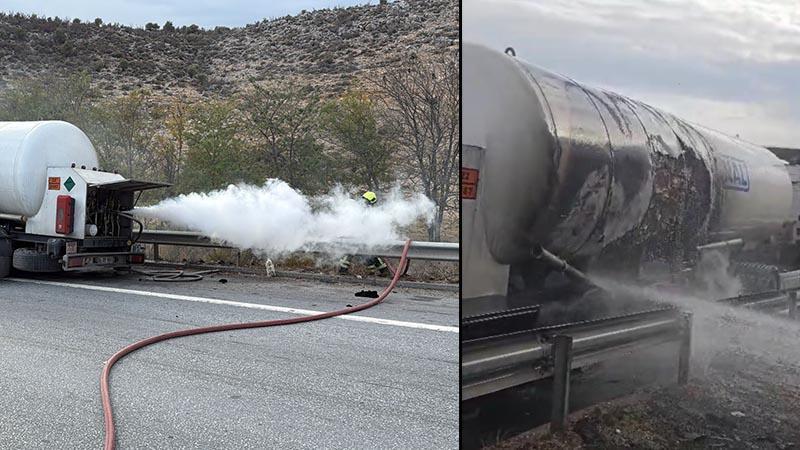 Pozantı-Ankara Otoyolu Akçatekir mevkisinde Pozantı yönünde ilerleyen 46 ADJ 387 plakalı karbondioksit taşıyan tankerde sabah saatlerinde bilinmeyen nedenle yangın çıktı. Alevleri fark eden sürücü aracı emniyet şeridinde durdurup 112 Acil Çağrı Merkezi’ne bilgi verdi. İhbar üzerine bölgeye Mersin Büyükşehir Belediyesi İtfaiye Dairesi Başkanlığına bağlı Tarsus Grup Amirliği ve polis ekipleri sevk edildi. Polis ekipleri, bölgeyi güvenli hale getirmek amacıyla yolu trafiğe kapatarak gerekli emniyet tedbirlerini aldı. Ters yönden kontrollü şekilde bölgeye ulaşan itfaiye ekipleri, yüksek patlama riski taşıyan tankere müdahale etti. Alevleri söndüren ekipler, soğutma çalışması yaptı. Patlama riskinin ortadan kalkmasının ardından bölgede trafik yeniden ulaşıma açıldı.