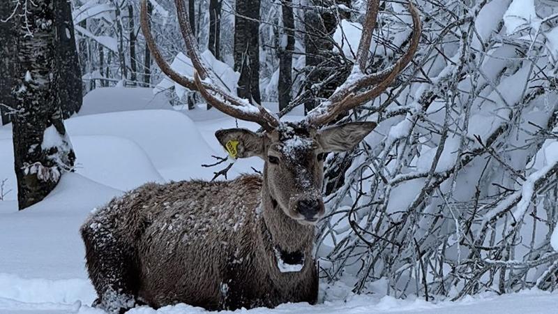 Karla kaplı Kuzuyayla Tabiat Parkı'nda kızılgeyik kamerada