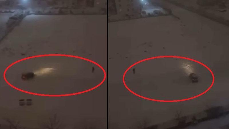 Diyarbakır'da karlı arazide sürücünün otomobiliyle drift yaptığı anlar, cep telefonu kamerasıyla kaydedildi.