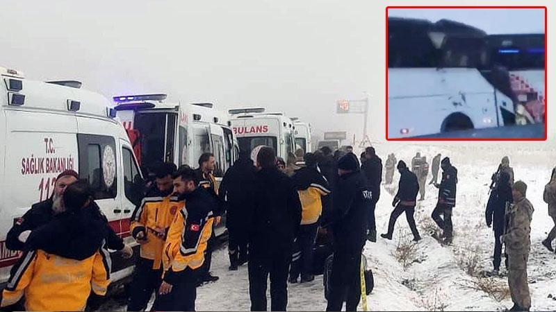 Kars'ta, 2 otobüs ve 1 kamyonun karıştığı kazada 2 ölü, 8 yaralı