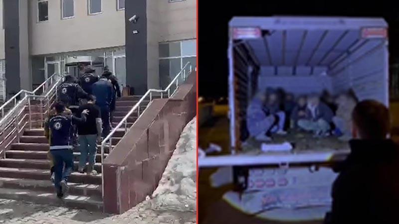 Kars'ta operasyon kapsamında durdurulan kamyonette 12 kaçak göçmen ile 4 organizatör yakalandı.