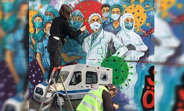 Kartal Belediyesi Sanat Akademisi Resim Bölümü Koordinatörü Ressam Murat Havan ve yönetimdeki ekip tarafından hayat bulan çalışma, hem farkındalık yaratmayı amaçlıyor hem de salgın sürecinde gece gündüz demeden, kendi yaşamlarını hiçe sayarak büyük bir özveriyle çalışan sağlık personeline teşekkür mahiyeti taşıyor.