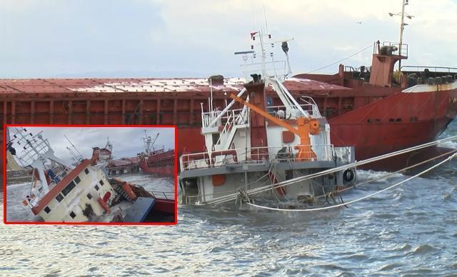 Kartal'da lodos nedeniyle bir gemi batarken, bir gemi de yan yattı; batma anı kamerada